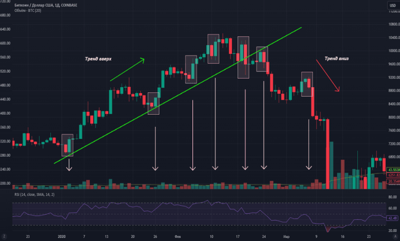 На свечных графиках можно выделить несколько основных трендов, которые помогают трейдерам определить направление движения цены. Одним из таких трендов является восходящий тренд, когда цена постепенно растет и каждая последующая свеча закрывается выше предыдущей. Обратным к восходящему тренду является нисходящий тренд, при котором цена постепенно снижается.